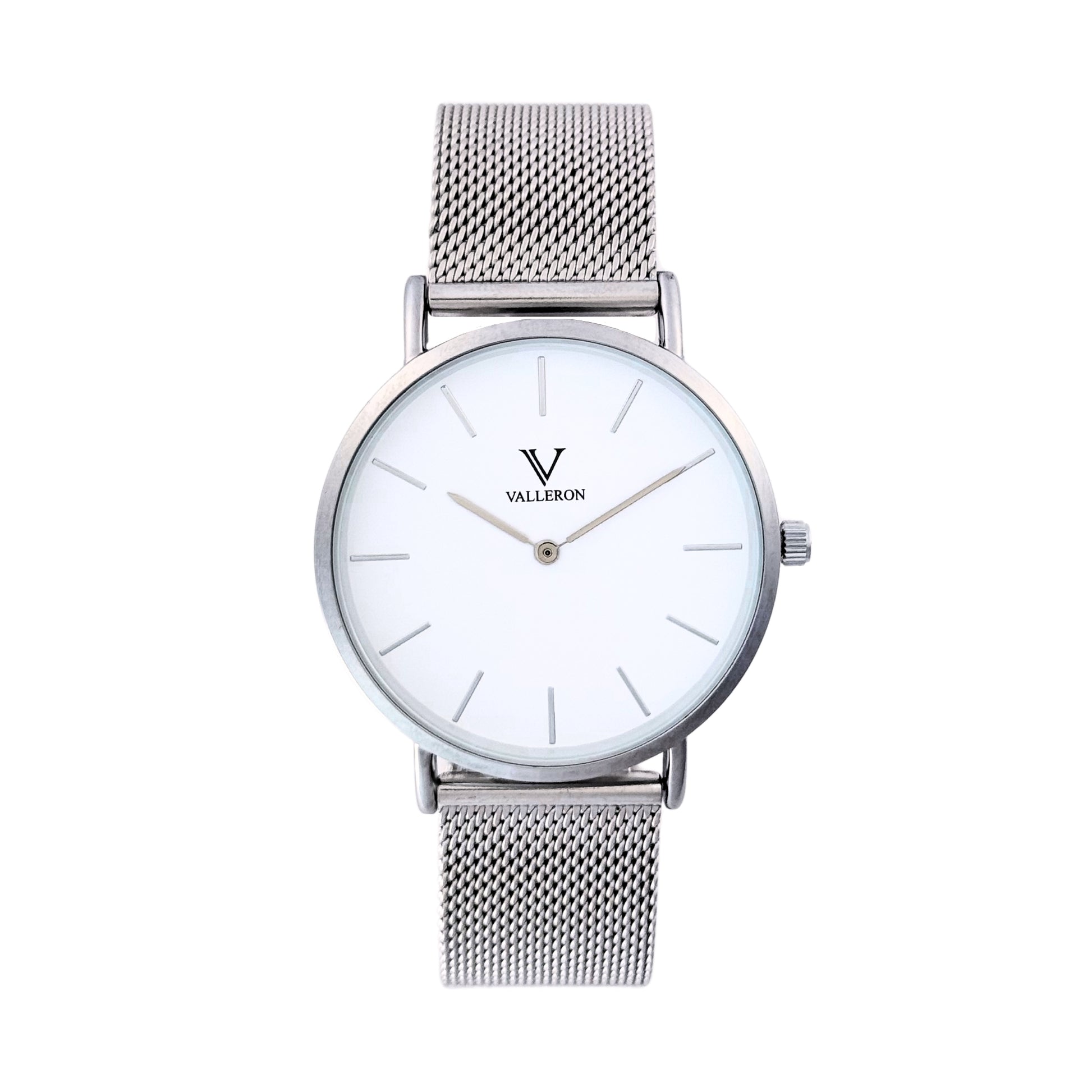 Bordeaux Silver 40mm Valleron Watch with silver stainless steel strap, has a diameter of 40mm.