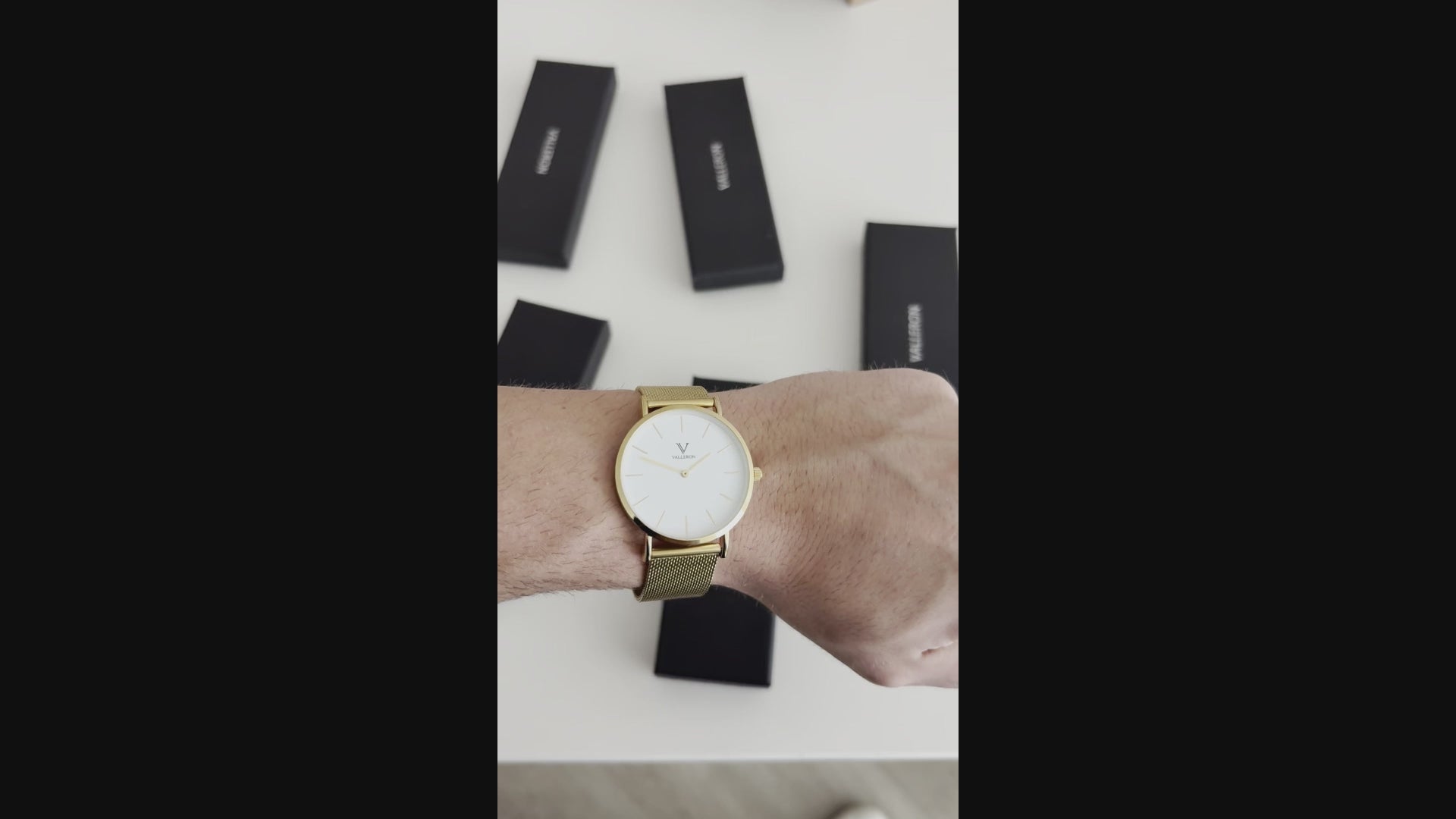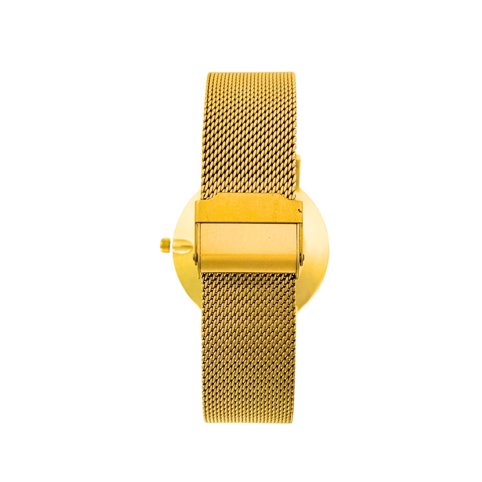 The case is made gold metal and the dial is white, with glass made of high-resistance hardened mineral. This watch is ready for you to go from the office to the rooftop party in the blink of an eye.