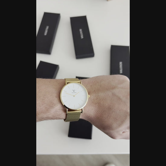Cannes Gold 40mm Valleron Watch with gold stainless steel strap, has a diameter of 40mm.