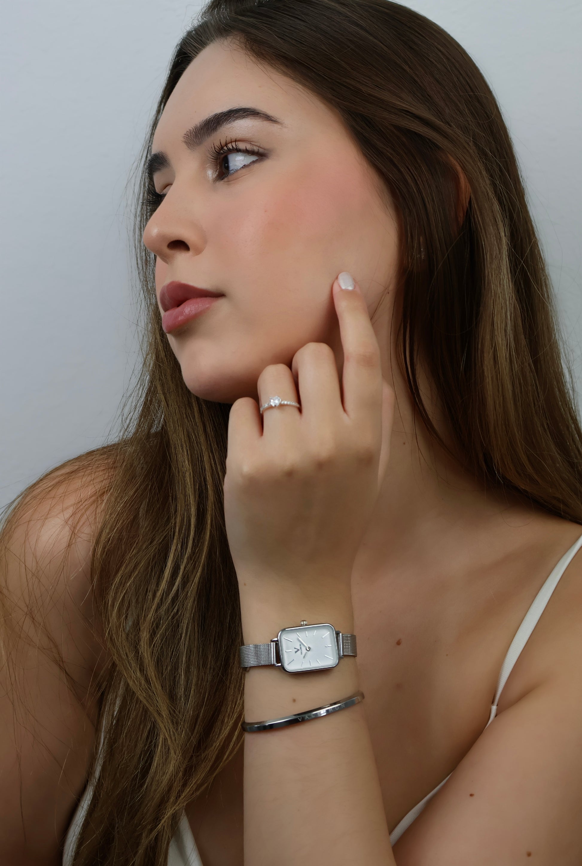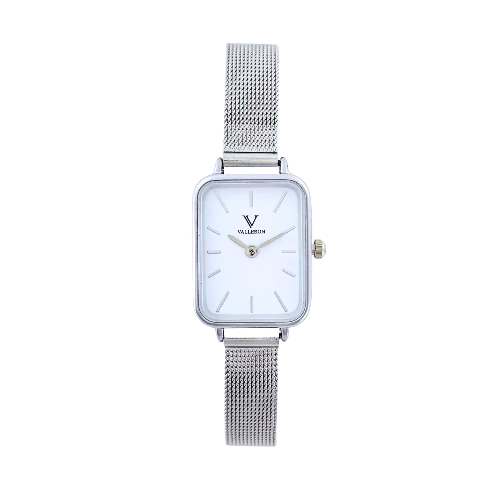Nancy Square Silver Valleron Women's Watch with silver stainless steel strap, has a diameter of 20x26mm