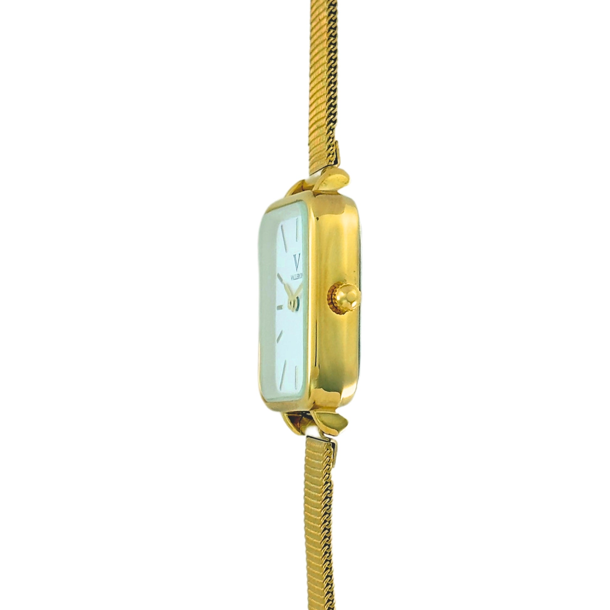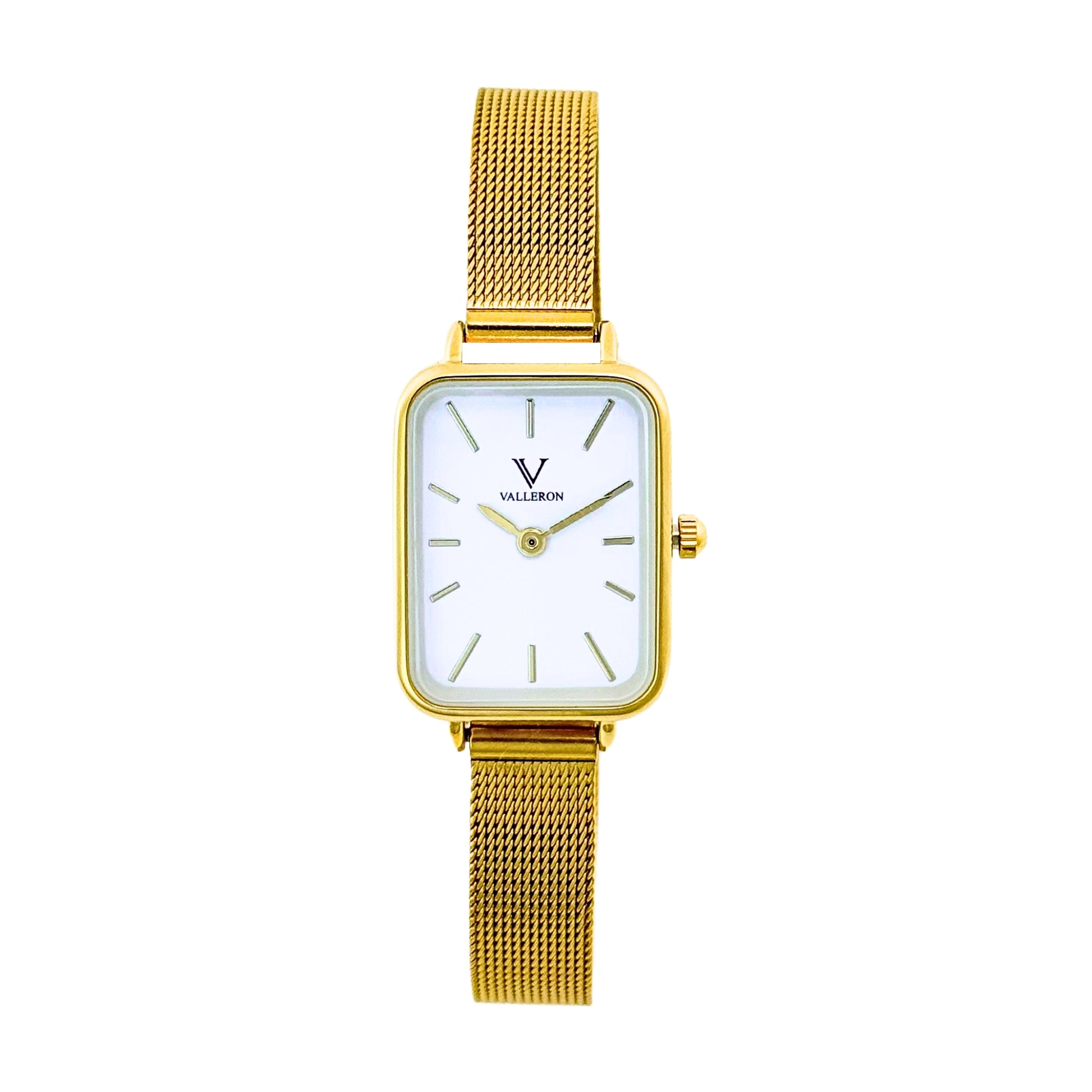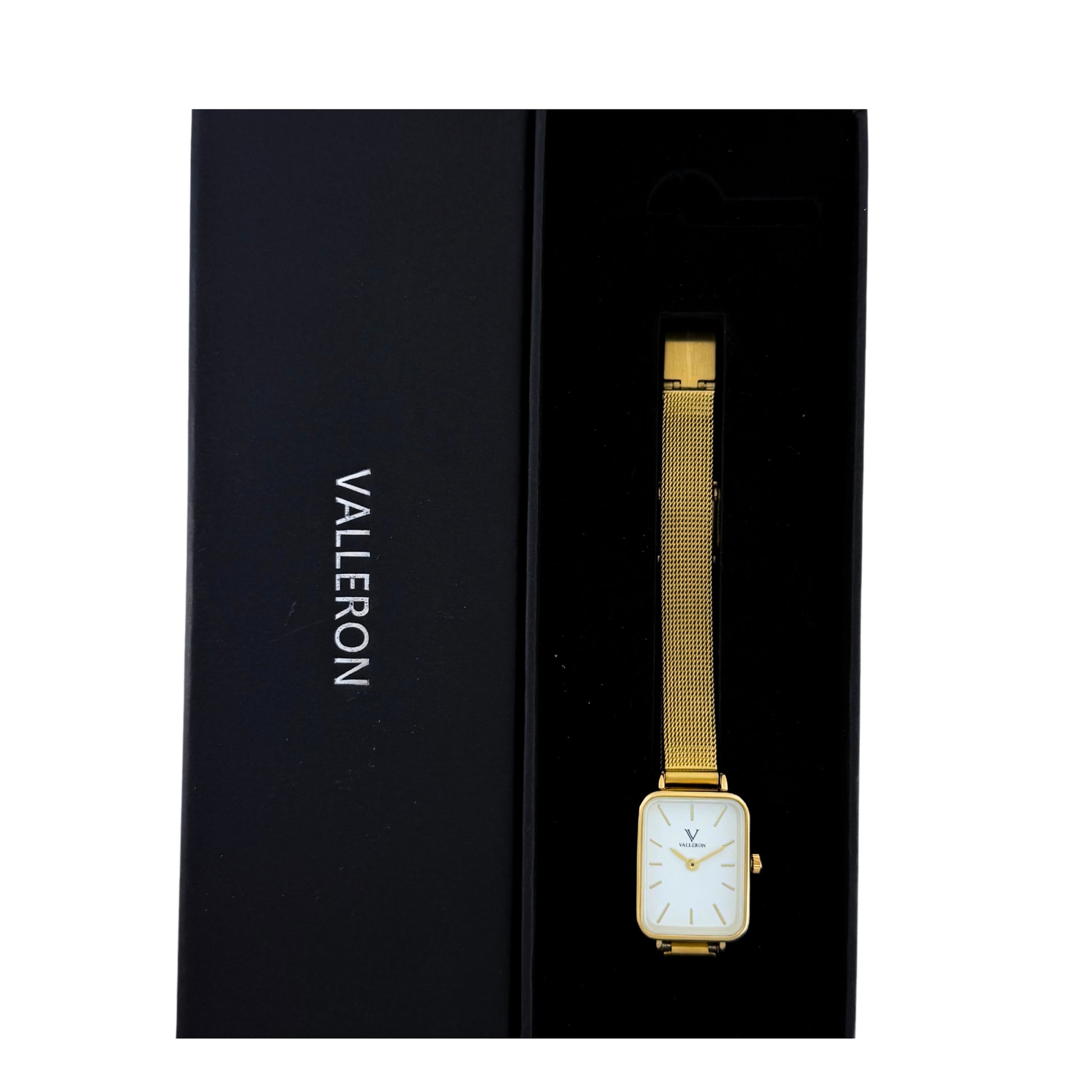Nancy Square Gold Valleron Women's Watch with gold stainless steel strap, has a diameter of 20x26mm