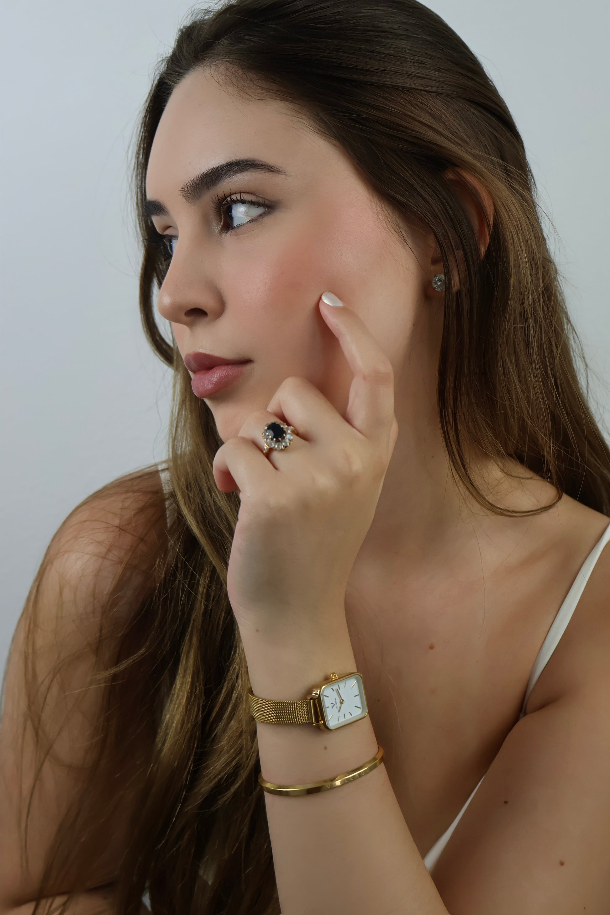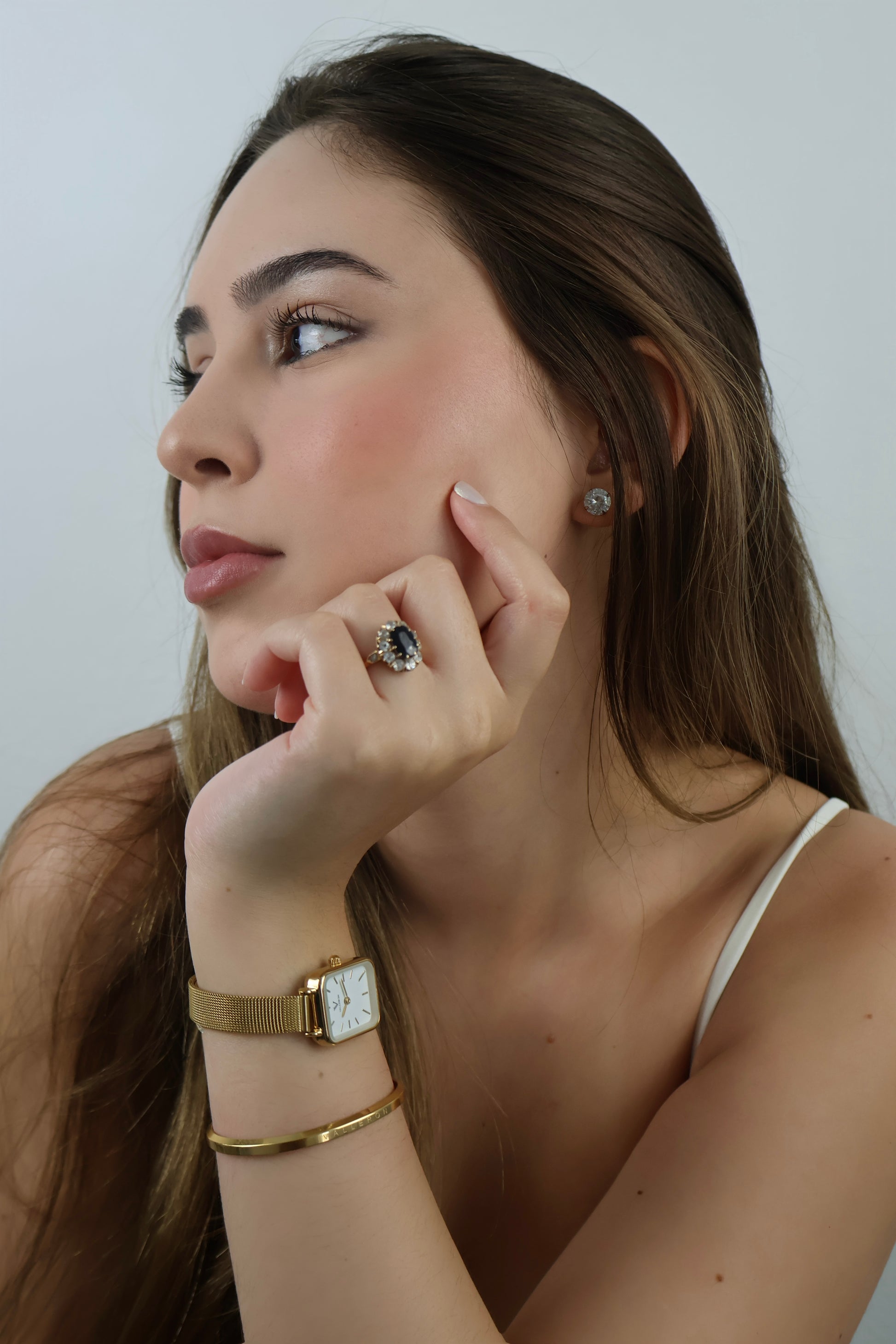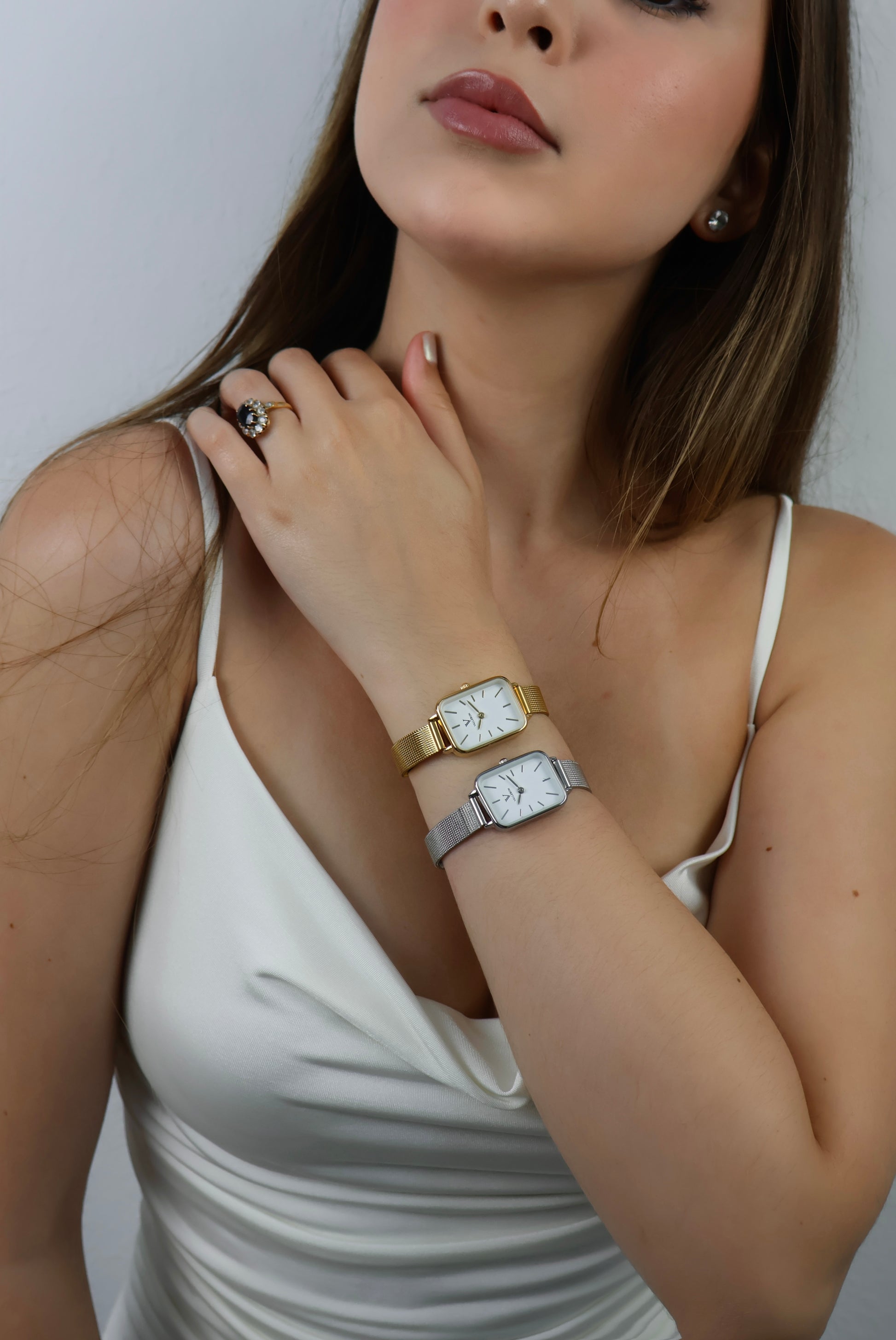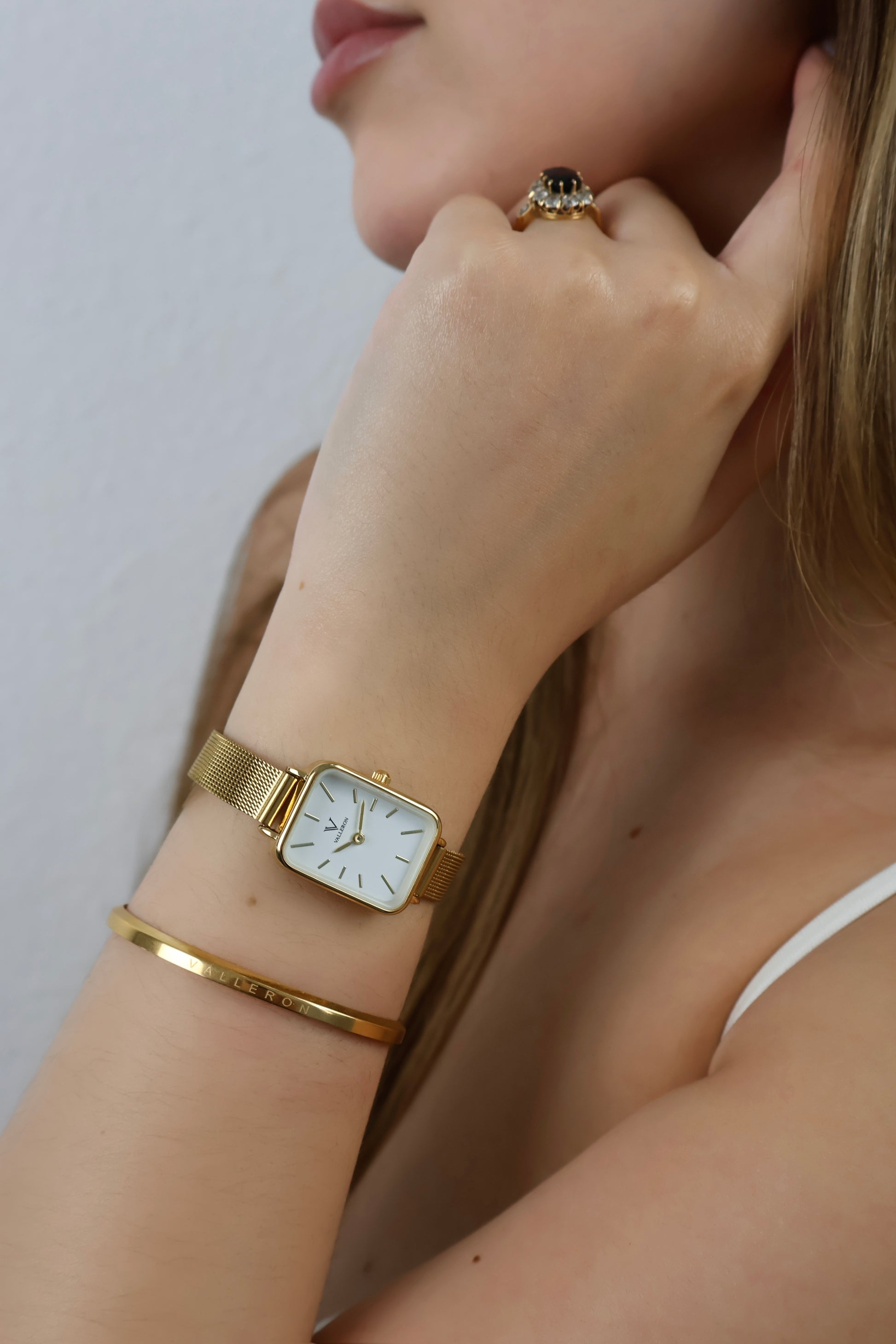 Nancy Square Gold Valleron Women's Watch with gold stainless steel strap, has a diameter of 20x26mm